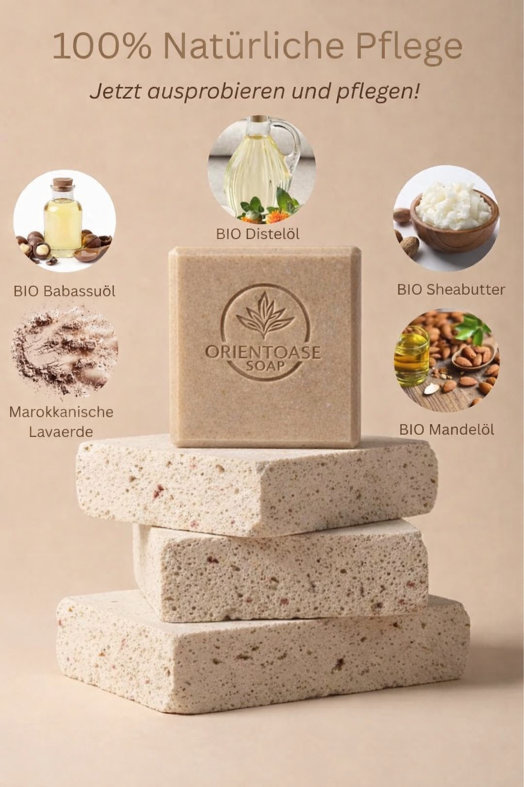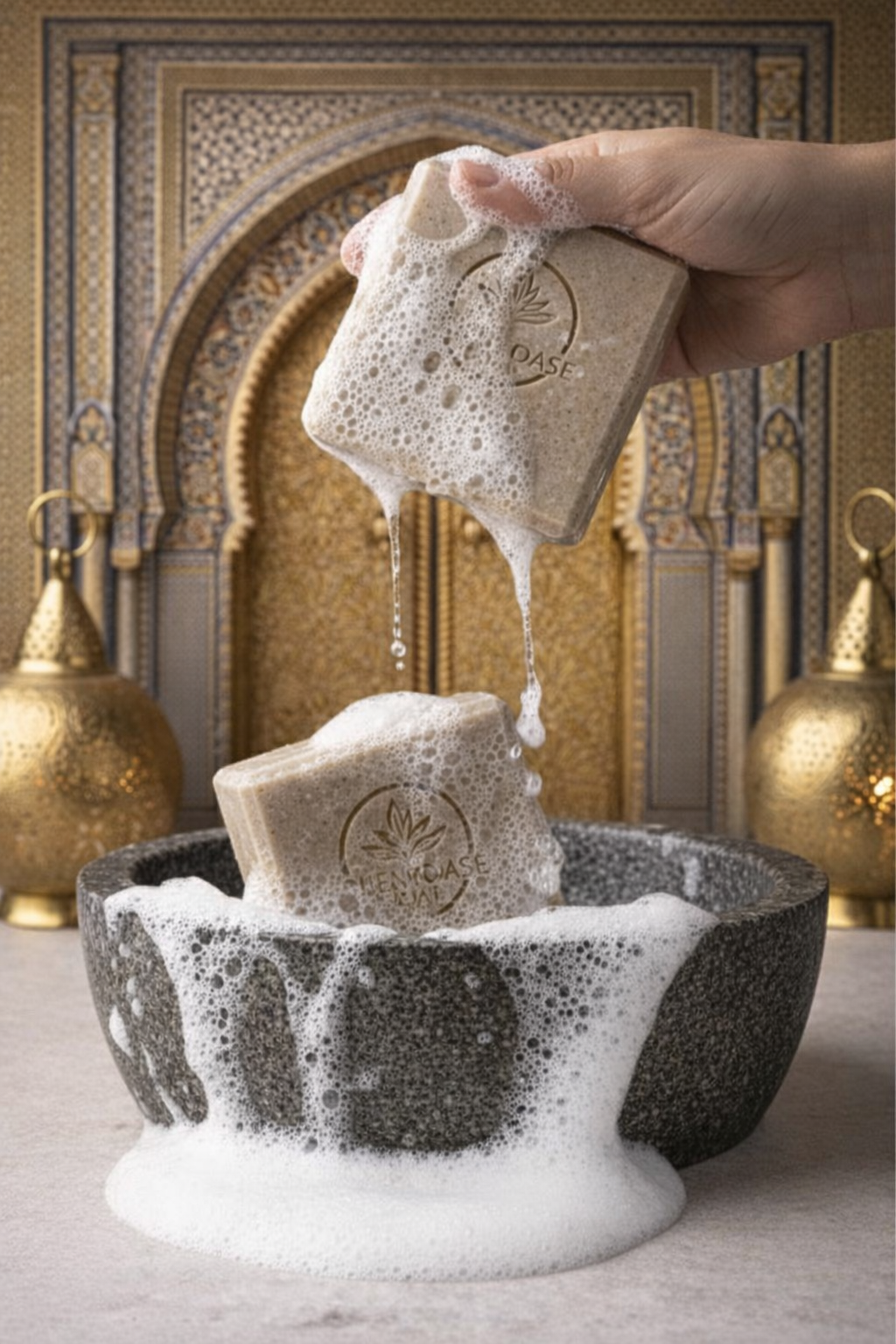 Entdecke das Geheimnis marokkanischer Schönheit – eine Seife mit natürlichem Rhassoul und 15% Überfettung, die trockenes Haar und durstige Haut in seidigen Luxus verwandelt.